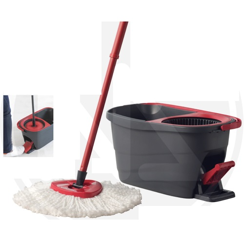 Nuovo lava pavimenti, dotato di un secchio dal design unico, un sistema di strizzatura a centrifuga attivabile tramite l’apposito pedale integrato e un fiocco 100% in microfibra, che garantisce un’ottima assorbenza e un efficace potere pulente, manico 3 pz. facile da smontare e pratico da usare